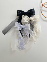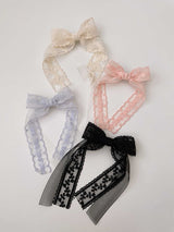 A charming ribbon clip featuring a delicate rose-embroidered lace tape layered with soft cream organza.