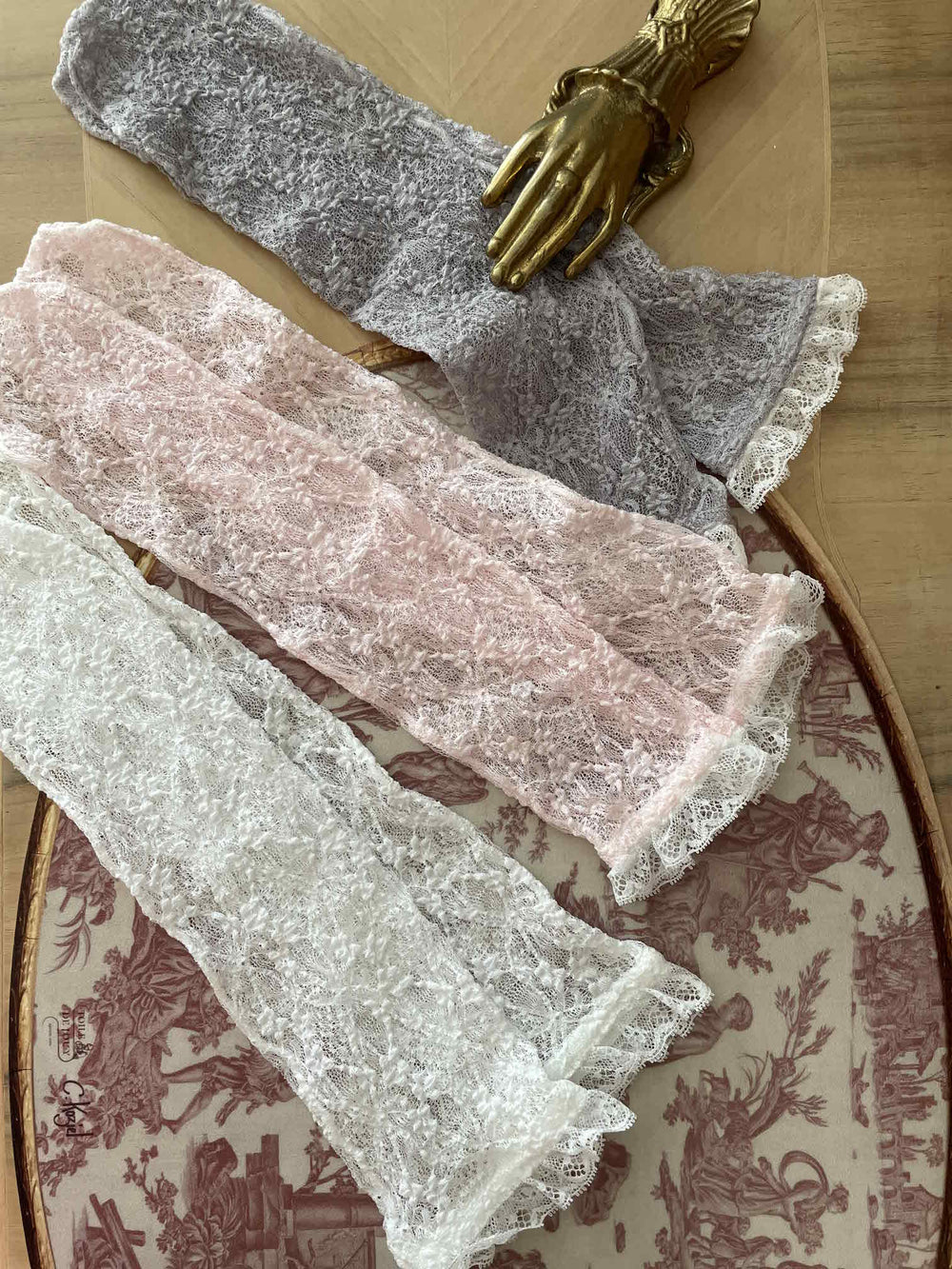 Delicate lace knit with ivory frill lace trim