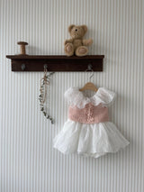 It's a beautiful dress romper that brings to mind angel wings. The lightweight and lovely round lace collar, along with the voluminous skirt, makes it adorable.