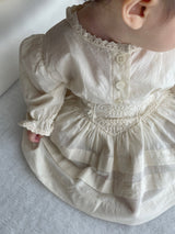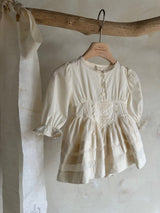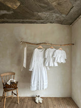 Delicate embroidered lace at the waist adds a sweet, heirloom-like touch