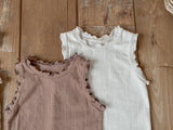 This is an ultra-comfortable and stretchy sleeveless cotton top for babies. Made from premium jacquard knit cotton, it feels cool and comfy to wear. It’s easy to pair with any outfit!