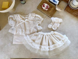 This charming lace cardigan is perfect for adding a touch of elegance to any outfit. Made from two types of lightweight lace and featuring delicate snowflake details, it's designed to keep you cool and stylish. The lace trim on the collar and hem adds a lovely, feminine touch. Easy to throw on with a ribbon closure, it pairs beautifully with sleeveless tops or dresses.