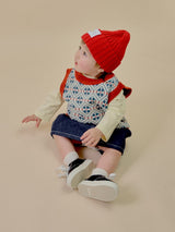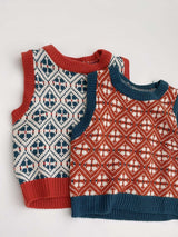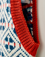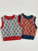 It's a vintage-inspired knit vest that you might have seen in your grandparents' photo albums. It features sophisticated colors and patterns, suitable for both boys and girls to wear warmly and stylishly. It pairs well with both short-sleeved and long-sleeved tops.