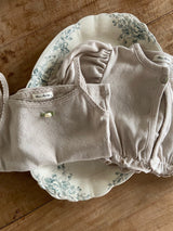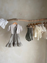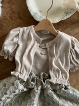 The lovely and comfortable cotton sleeveless top and cardigan set for little baby girls. It features the adorable small rose motif at chest of the top and abundant shirring of the cardigan. This is a lovely item that goes well with any style. The stretchy and comfort cardigan is easy to layer with any other outfits at summer.