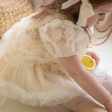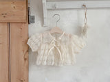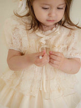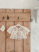 This lightweight, airy cardigan is crafted from beautiful rose lace, making it perfect for layering on warm days. It features a ribbon closure for an easy, open-front look and can be worn both ways, front or back. Ideal for pairing with sleeveless tops or dresses, it's a versatile addition to your little one's wardrobe.