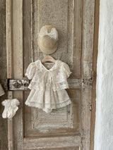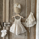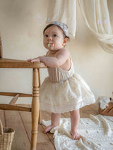 This lace skirt romper is adorned with floral-patterned embroidery. It's lovely and comfortable with the ribbed spandex cotton material. Perfect for hot summer days. You can also pair it with a cardigan for a stylish look.