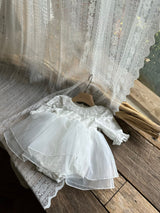 Luxurious velour romper with a double-layered organza skirt for angelic volume