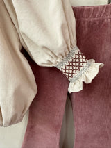 Our beloved Smocked Romper returns — now crafted in a soft corduroy cotton fabric and elevated with beautifully contrasting smocked details.