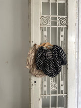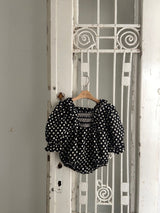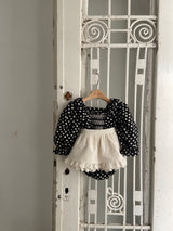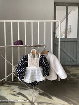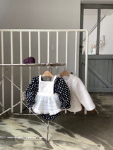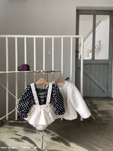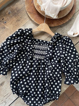 This romper features natural-coloured smocking and delicate frilled wings, creating a sweet and girlish charm. The square neckline beautifully accentuates femininity, while the back slit adds an elegant touch. Perfect as a thoughtful gift or for special occasions, this piece is both stylish and memorable.