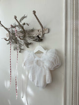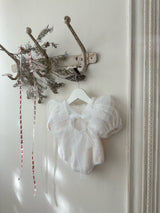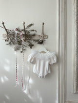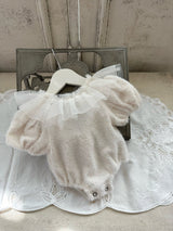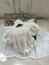 This precious baby bodysuit is crafted from a soft knit fabric, offering gentle warmth and comfort for your little one.