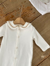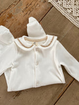 This newborn suit is crafted from soft, gentle fabric in beautifully muted, natural tones.