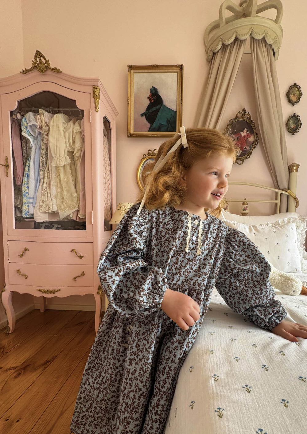 This corduroy dress, featuring vintage mint and brown colours, stands out with its button opening at the neck, delicate lace trim, and embroidered pockets, giving it a sophisticated touch. Perfect for capturing the beauty of vintage-themed photoshoots, but also highly recommended as a daily dress with its timeless charm.