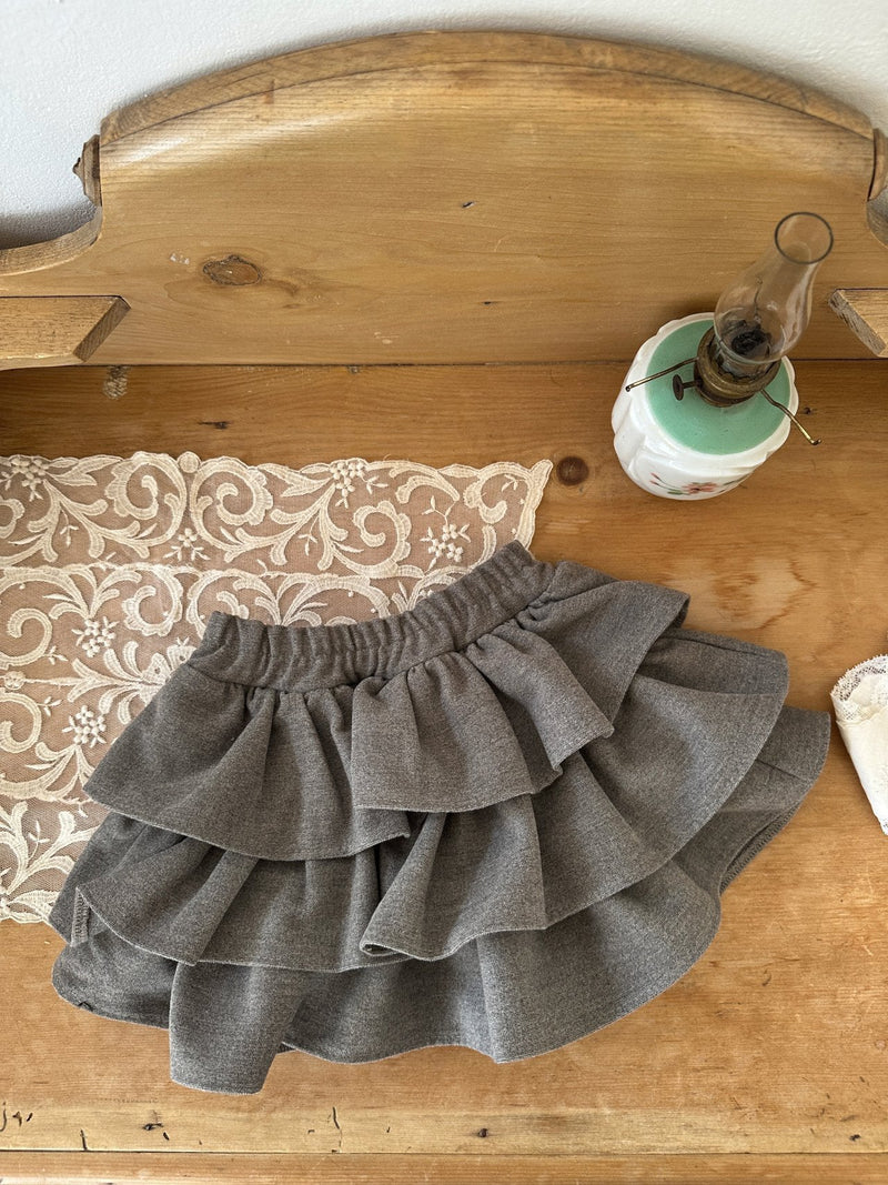 A charming two-piece set featuring a voluminous layered blouse and skirt — full of playful flair and sweet details.