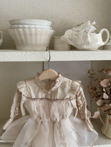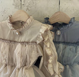 The dress is accented with ruffled frills along the shoulders for an extra touch of charm. Although the brooch is not included in the original outfit, we are gifting it to a limited number of customers on a first-come, first-served basis.