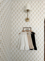 This dress offers both comfort and elegance with its lace detail on the chest and muslin cotton fabric. The A-line silhouette and the frill at the skirt's hemline add a touch of charm.