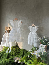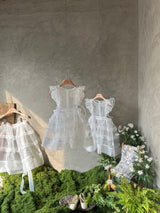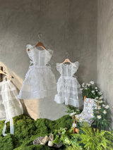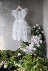 It's an apron that creates a beautiful silhouette with abundant frills and shirring. It can be layered over any dress, instantly adding a more romantic and special outfit.