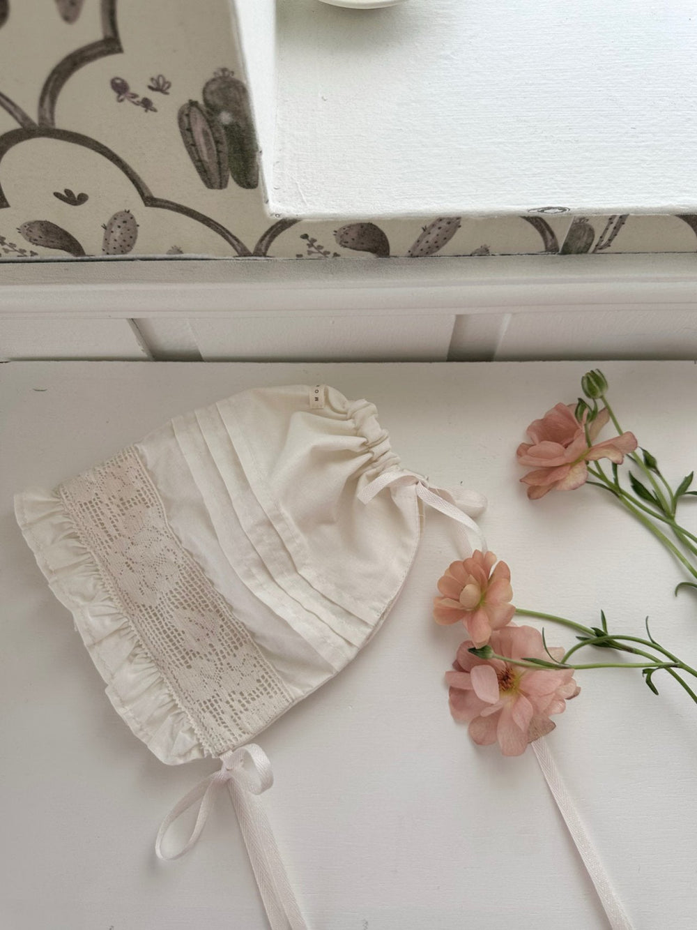 Vintage Cream Cotton Baby Bonnet – Handcrafted Luxury Detail