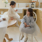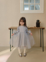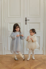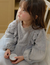 Floral embroidered lace and delicate frills add a sweet touch, while the airy tulle skirt creates an elegant, refined silhouette. The bodice is lined with soft cotton fleece for extra warmth—perfect for cooler days.