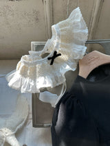 A luxurious neck collar that features delicate ruffles and elegant lace details. This versatile piece adds a touch of sophistication to any outfit, making it a must-have item for elevating your style.