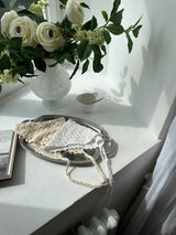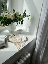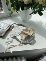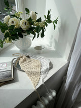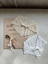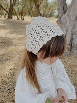 The lovely handmade scarf is perfect for babies and can also be used as a hair kerchief. Featuring an intricately woven knit pattern, you can wrap it around the baby's head or shoulders, creating a cute vintage look with an elegant touch.