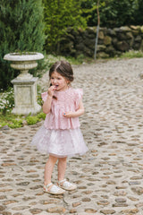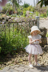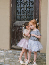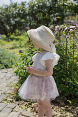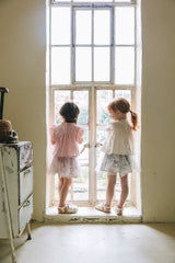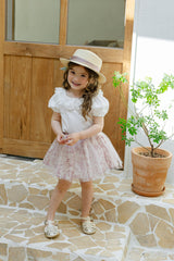 This elegant skirt features a beautiful vintage print and a voluminous tulle layer, creating a sophisticated look. It pairs beautifully with any top, offering an effortlessly elegant and charming outfit.