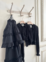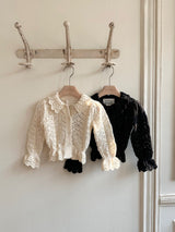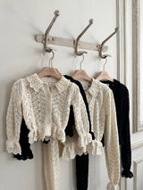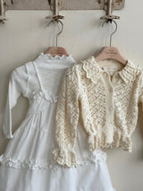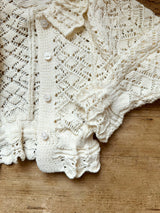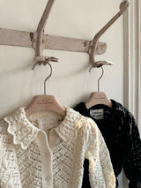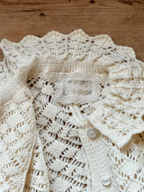 This cardigan features a romantic crochet knitting. Crafted from pure cotton, it exudes luxury. The scallop-shaped neckline and hemline add a truly luxurious touch.
