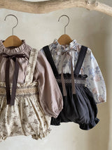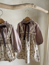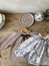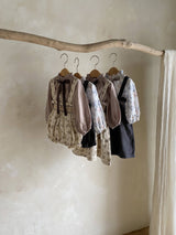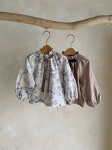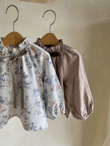 This blouse features a soft fabric with a slight sheen silk like fabric, adding a touch of elegance. The frilled neckline and voluminous body line add a touch of charm, while the front ribbon enhances the overall elegance of the outfit. The rose-patterned blouse is bright and cheerful, perfect for drawing attention, while the milk cocoa colour is calm and sophisticated, making it a standout piece wherever.