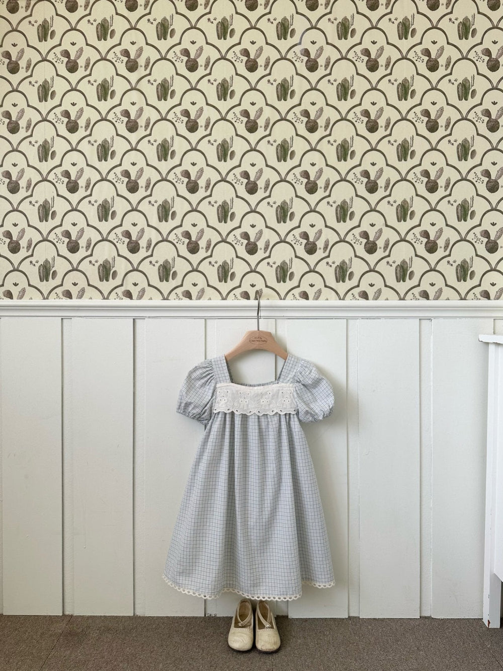 Vintage Blue Check Dress with Eyelet Lace Detail
