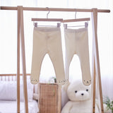 These are cream-coloured daily leggings that go well with any outfit. These are cute leggings with the faces of bears and rabbits as a point at the tips of their feet.