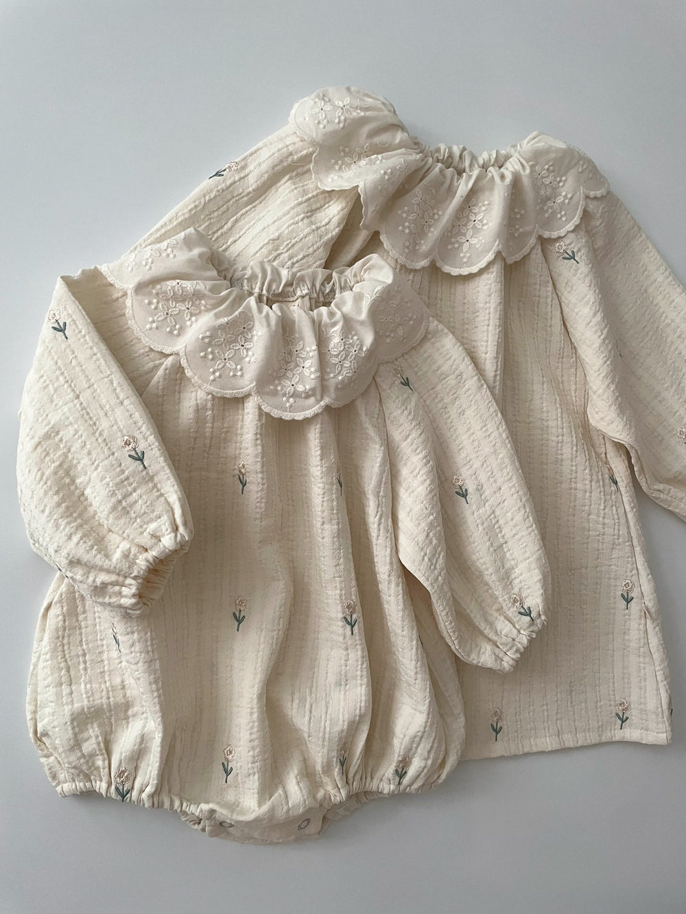 Premium, soft milk-toned cotton with delicate all-over floral embroidery