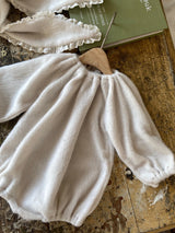 Wrap your little one in warmth and charm with this cosy romper and sweet bunny-ear bonnet set.