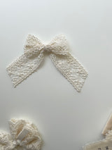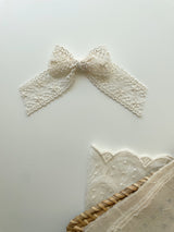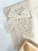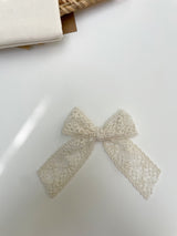 The lovely lace bow hair clips for girls. The wide 4 cm embroidered lace tapes are so timeless.
