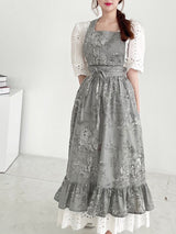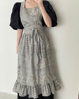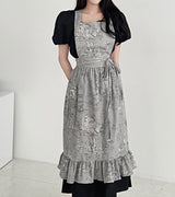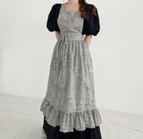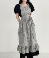 It's an apron that can be styled like a pretty dress, perfect for wearing over any outfit. Try wearing it romantically and beautifully on days when guests come over or when you're at home. This apron is handmade in small quantities at a small atelier. The design features shoulder straps that cross at the back, worn from bottom to top.