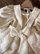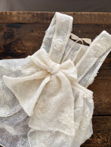 Crafted from two layers of delicate lace, this sweet little apron exudes classic elegance and timeless charm. The intricate double-layered lace adds a touch of sophistication, making it both beautiful and functional.