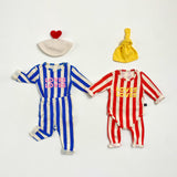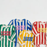 This Pippi loungewear set includes a matching top and pants, designed with bold vertical stripes for a modern, playful look. The top features a charming "LOVES" print in coordinating colors, adding a sweet accent to the set. The vibrant mix of stripes and tones creates a stylish yet relaxed outfit, perfect for everyday wear. Pair it with the Pippi romper set for a coordinated sibling or twin look—an adorable option for both boys and girls.