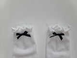 Introducing our Soft Ribbed Cotton Baby Socks. Made from lightweight, stretchy cotton, these socks provide a comfortable and stylish fit. The delicate ribbon detail adds a touch of sweetness, perfect for your little one.