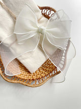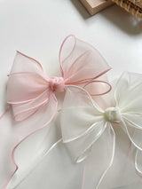This elegant organza bow clip pairs beautifully with all of our outfits. The voluminous double-layered bow features a graceful midi-length tail that adds a touch of sophistication. Softly wavy and delicately detailed, it brings an extra dose of charm to any look.