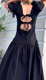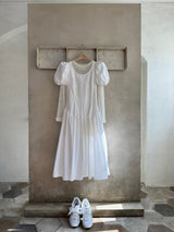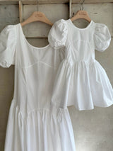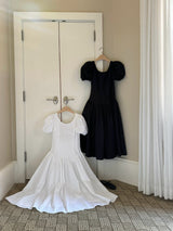 Full of charm, this dress features puff sleeves and a back tie, crafted from a breezy, textured fabric. With its full, flowy skirt, it's perfect for both special occasions and everyday wear. There is no lining, so the ivory color may be slightly sheer.