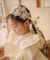Worn as a wide lace band for older girls or styled like a bonnet for babies, they offer a charming and versatile look.