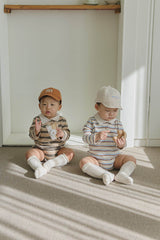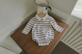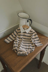 A cozy and stylish baby polo suit featuring soft multi-stripe patterns. Available in cream and beige tones that are perfect for both boys and girls. Easy to mix and match with any bottoms, this piece is a comfortable and versatile addition to your little one’s wardrobe.