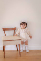 Delicate floral embroidery and eyelet details throughout for a refined finish